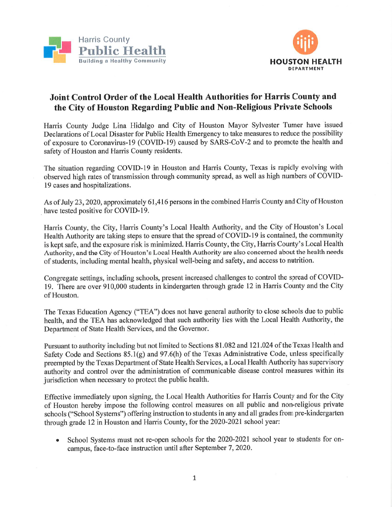 Harris County Public Health Socialdistance على تويتر Joint Control Order Of The Local Health Authorities For Harris County And The City Of Houston Regarding Public And Non Religious Private Schools Covid19 Hounews